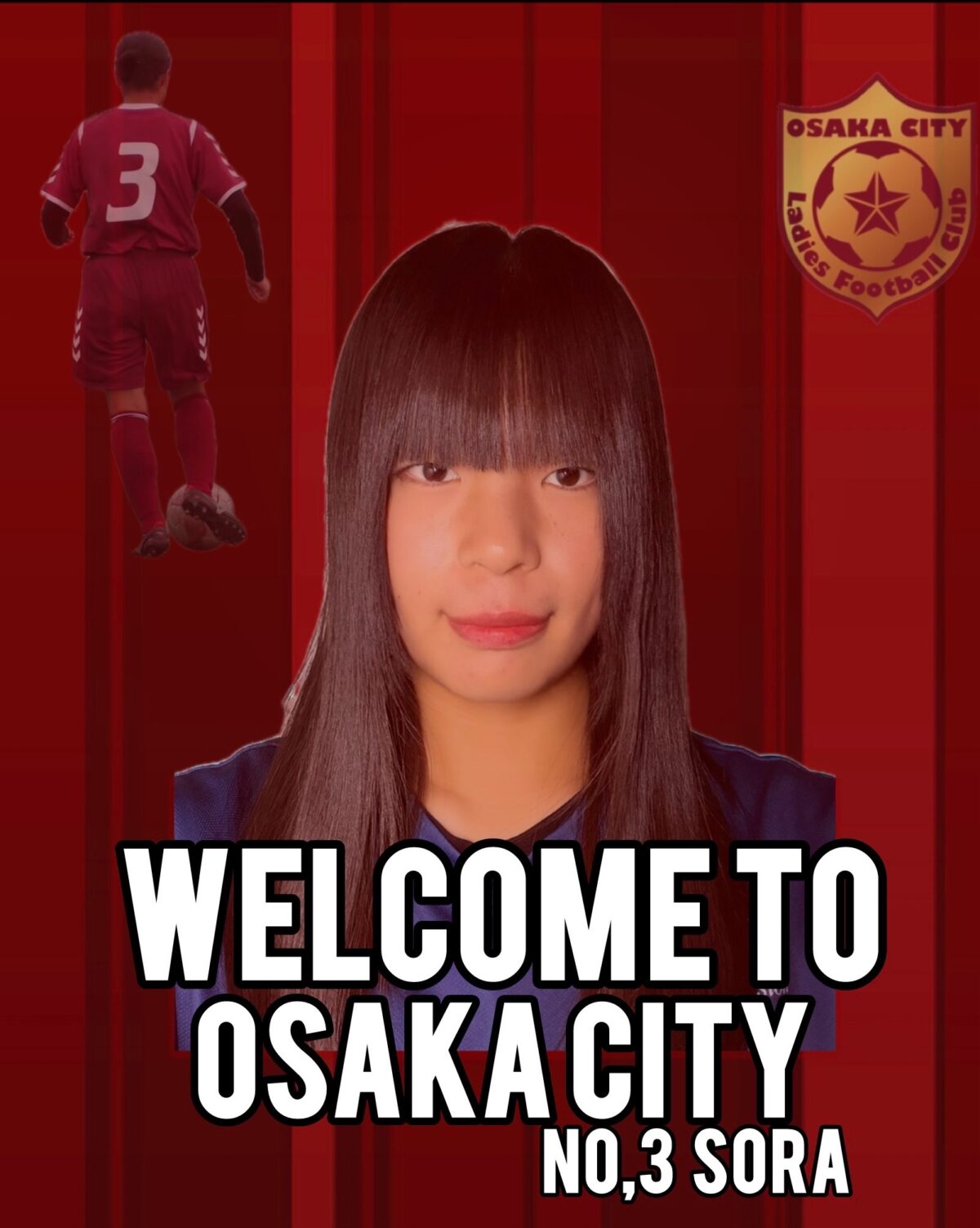 このたび、下記選手が大阪市レディースFCへの加入が決定しましたのでお知らせします。 選 手 名 : そら 年 齢 : 18歳 ポジション : FW 背 番 号 : 3 経 歴 : 湖山西SC〜鳥取FCレディース〜鳥取城北高校 新しい仲間、そら選手への温かい応援をよろしくお願いします!