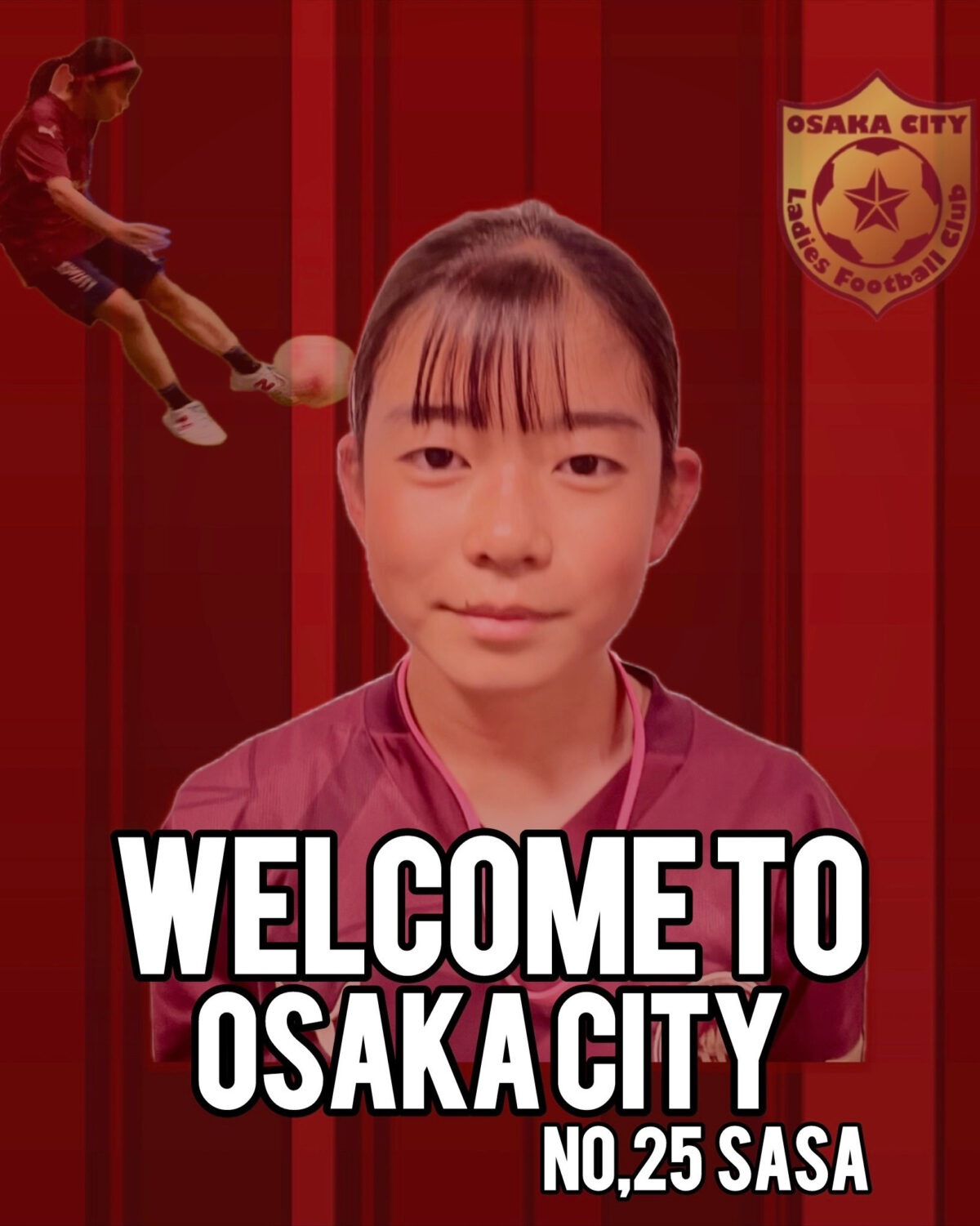 このたび、下記選手が大阪市レディースFCへの加入が決定しましたのでお知らせします。 選 手 名 : ささ 年 齢 : 14歳 ポジション : MF 背 番 号 : 25 経 歴 : 石切東FC~OSAKAピオーネ~AC.gloria girls 新しい仲間、ささ選手への温かい応援をよろしくお願いします!